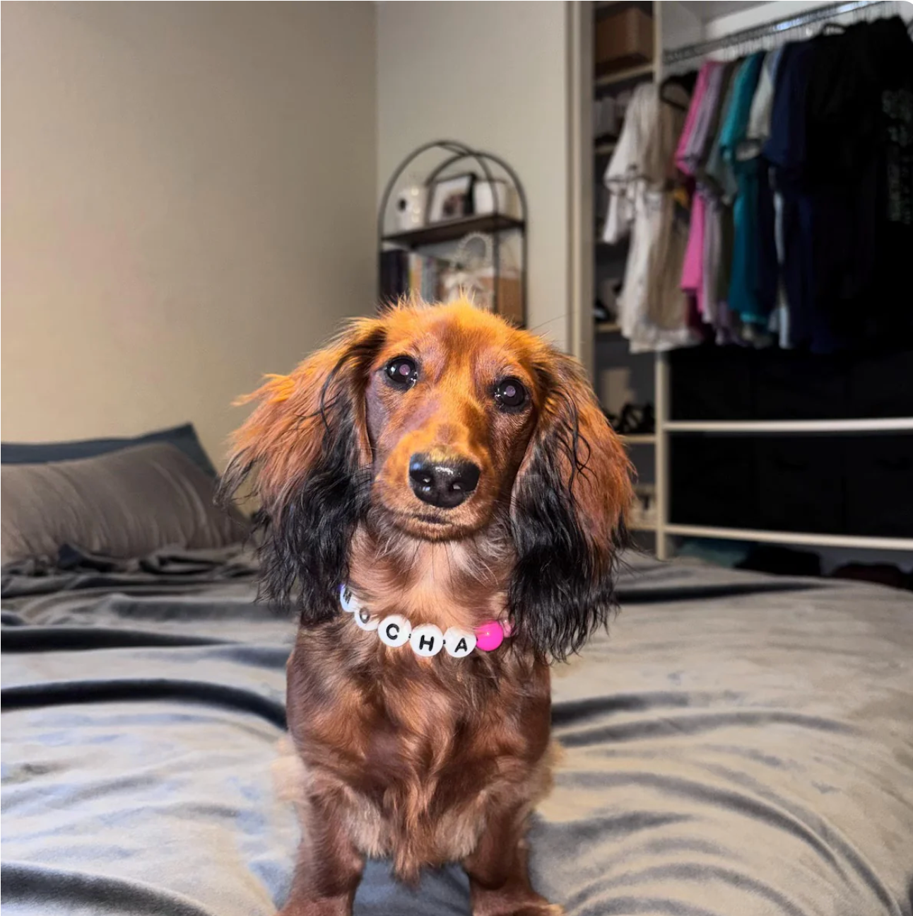 No, your dog’s hair won’t get tangled. The charm is lightweight, smooth, and sits flat against the collar, so it won’t catch or pull on the fur.